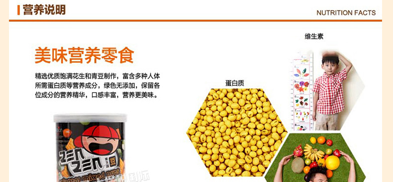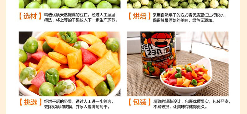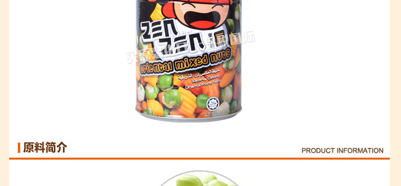 產品說明 馬來西亞印象牌東方什錦豆(花生、青豆)香脆可口 辦公休閑小零食 120克/罐——