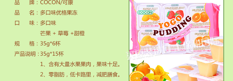 馬來西亞可康牌多口味優格果凍(含椰纖果)美味零食布丁 6杯/15杯裝—— 1、含有大量水果果肉,果味十足。 2、零脂肪,低卡路里,減肥膳食。 |