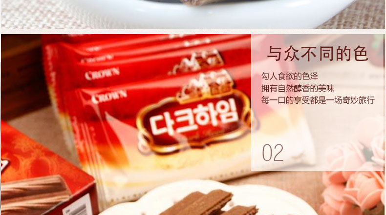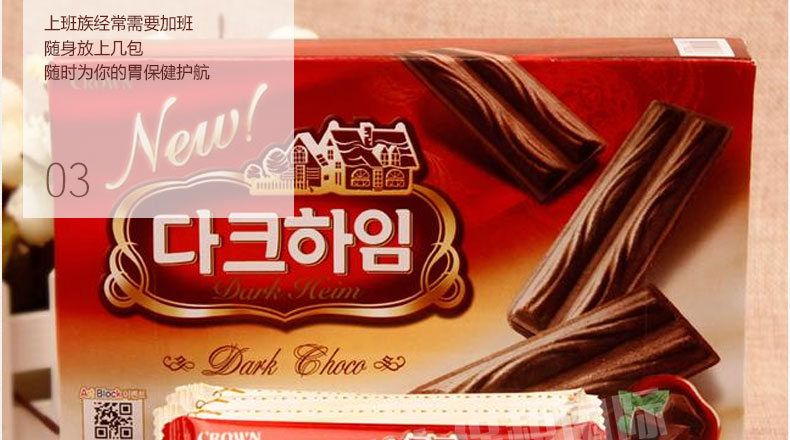 韓國crown 可拉奧黑奶油榛子蛋卷 香酥可口 色香味俱全 休閑小零食 142g/盒—— 1、經典韓式美食,長條狀造型,可一分為二。 2、烤制后,色香味俱全,美味誘人,入口即化。 3、獨立小包裝,時尚又衛生,方便攜帶,外出食用。 |