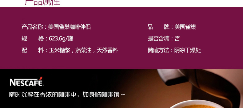 美國(guó)雀巢咖啡伴侶 咖啡必備好搭檔 香醇風(fēng)味 623.6g/罐 |