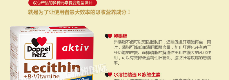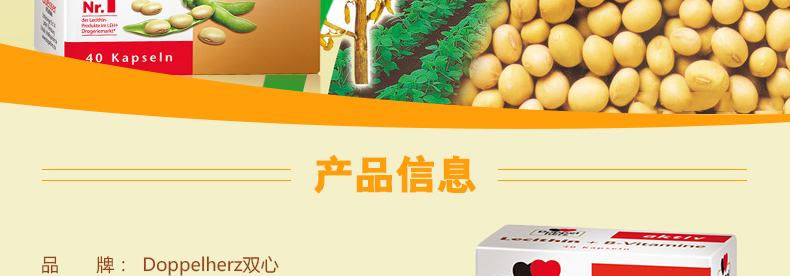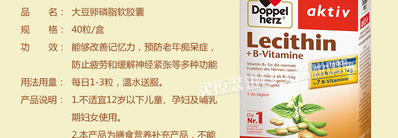 2盒裝 德國Doppelherz雙心大豆卵磷脂軟膠囊 天然卵磷脂精華膠囊 護肝加壓防三高保健品 40粒/盒*2—— 1.不適宜12歲以下兒童、孕婦及哺乳期婦女使用。 2.本產品為膳食營養補充產品,不能代替藥物。 |