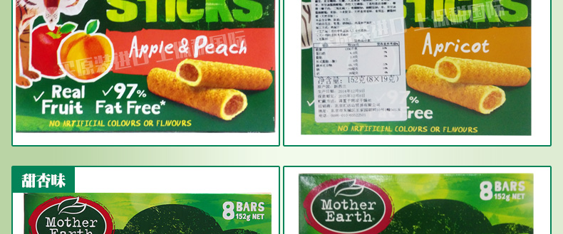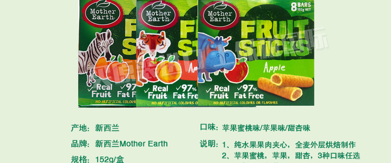 新西蘭Mother Earth 媽媽農(nóng)場夾心水果麥條 蘋果蜜桃味/蘋果味/甜杏味 3種口味任君挑選 休閑辦公零食 152g/盒 |