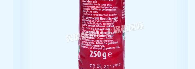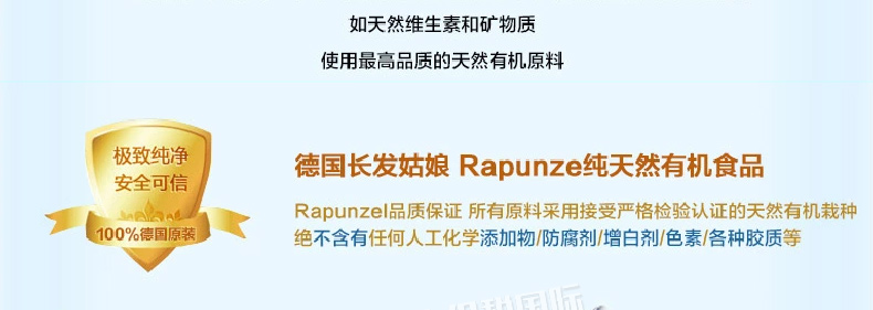 德國Rapunzel長發公主 有機彩色蔬菜字母面 7個月以上寶寶 天然全麥面 250g/袋*2—— 1、面粉由優質的意大利有機斯佩爾特小麥研磨而成。 2、無任何添加劑,防腐劑,人工色素。 3、富含膳食纖維,促進腸胃蠕動,具有健胃清腸效果。 |