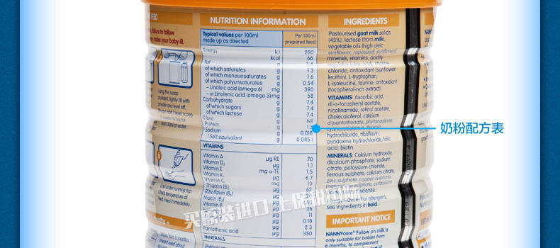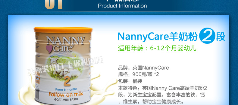 英國(guó)Nannycare嬰幼兒羊奶粉2段 6-12個(gè)月寶寶適用 母乳之外的更好選擇 900g/罐 |