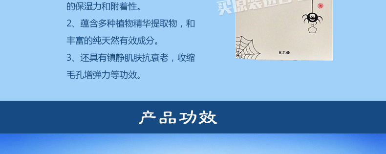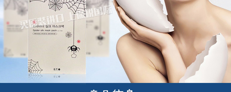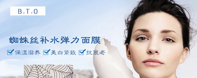 韓國新生活BTO蜘蛛絲補水彈力面膜 保濕滋養 美白緊致抗衰老 25g*10片/盒—— 1、蜘蛛絲黃素蛋白成分具有卓越的保濕力和附著性。 2、蘊含多種植物精華提取物,和豐富的純天然有效成分。 3、還具有鎮靜肌膚抗衰老,收縮毛孔增彈力等功效。 |
