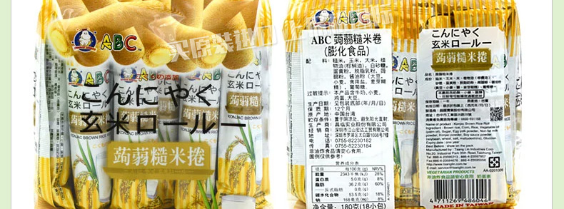 臺(tái)灣ABC谷物糙米卷 雜糧糙米卷活力棒/蒟蒻糙米卷能量棒 酥松柔軟 營(yíng)養(yǎng)美味 非油炸休閑零食 180g/袋 |