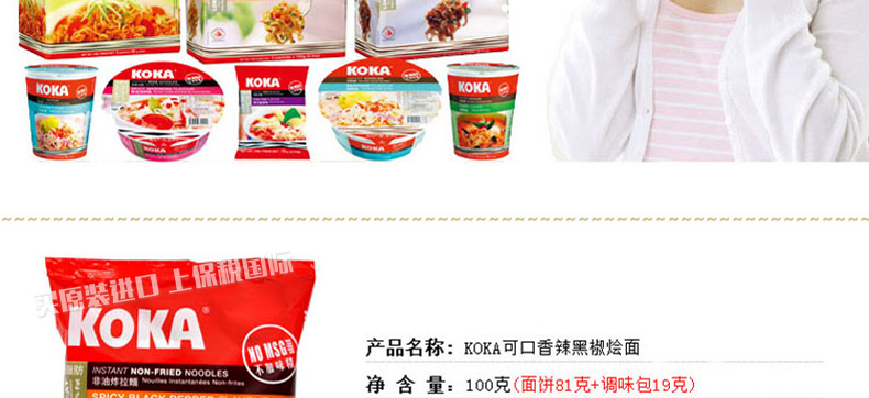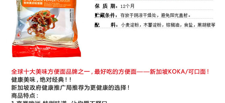 新加坡KOKA可口牌 香辣黑胡椒燴面 非油炸健康食品 勁爽的香辣美味 100g/包 |