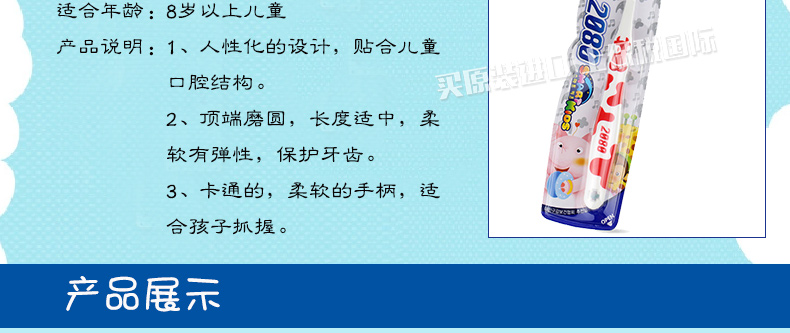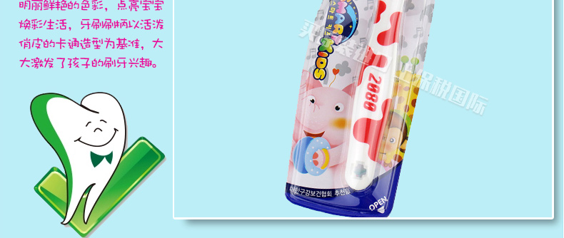 韓國愛敬2080聰明寶寶牙刷4段 8歲以上兒童適用 貼合兒童口腔結(jié)構(gòu) 藍(lán)色紅色隨機(jī)發(fā)貨 單支裝—— 1、人性化的設(shè)計,貼合兒童口腔結(jié)構(gòu)。 2、頂端磨圓,長度適中,柔軟有彈性,保護(hù)牙齒。 3、卡通的,柔軟的手柄,適合孩子抓握。 |