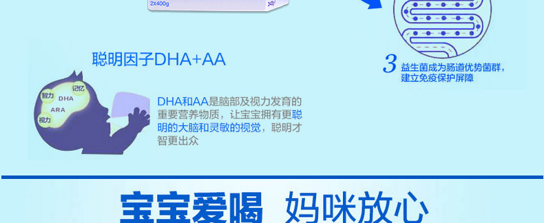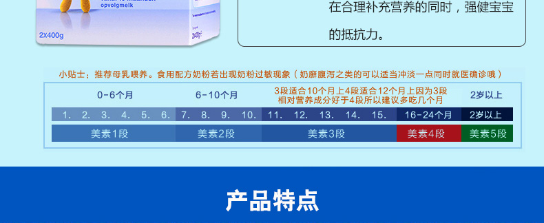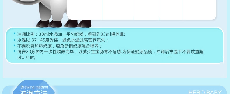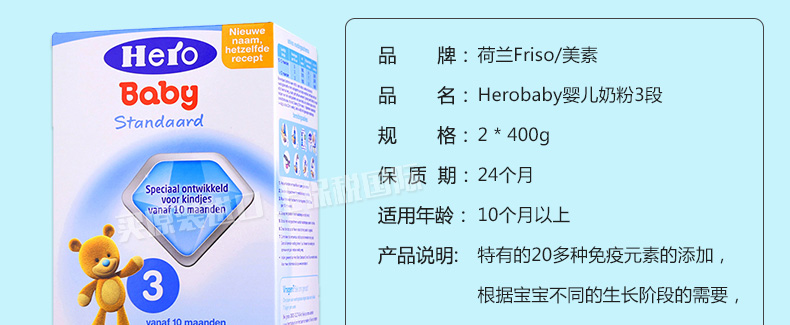 2盒裝 荷蘭美素Friso/Herobaby嬰兒奶粉3段 10個月以上 800g/盒*2 1、富含DHA/AA 幫助腦部及視力發育,健康益智,接近母乳 。 2、蘊含GOS等益生元組合,調理腸胃,減少寶寶便秘。3、蘊含維生素D及核苷酸,富含鐵質,有助于骨骼增長,增強免疫力,減少貧血。 4、 特有的20多種免疫元素的添加,根據寶寶不同的生長階段的需要,在合理補充營養的同時,強健寶寶的抵抗力。 5、絕不添加防腐劑,香精,色素和蔗糖,更健康,更接近母乳。