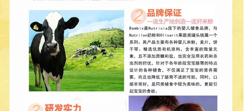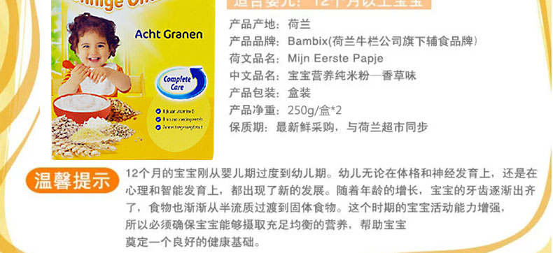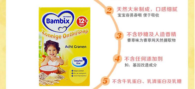 荷蘭Nutricia 牛欄Bambix原味營養燕麥米粉4段 寶寶營養米糊 寶寶輔食 12個月以上寶寶 250g/盒*2 兩盒裝—— 1、以黑麥,小麥,燕麥,玉米等8種谷物研磨而成。 2、富含多種維生素,膳食纖維,鐵等營養元素。 3、每勺米糊蘊含63%的AHD,維護寶寶腸胃機能高效運作。 |