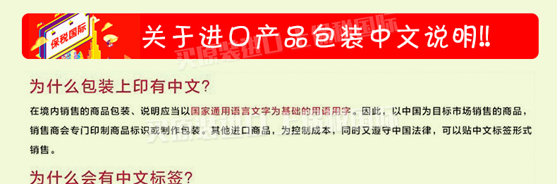 | 權利聲明: 保稅國際的所有商品信息、客戶評價、商品咨詢等內容,是保稅國際重要的經營資源,未經許可,禁止非法轉載使用。 注:本站所有商品均為原裝進口商品,境外直郵,全程海關監管,假一罰十,對任何冒用保稅國際行銷的行為,本站將追究法律責任,請放心購買。 |