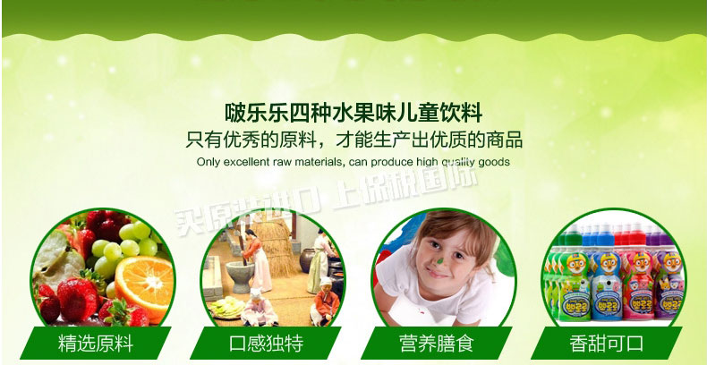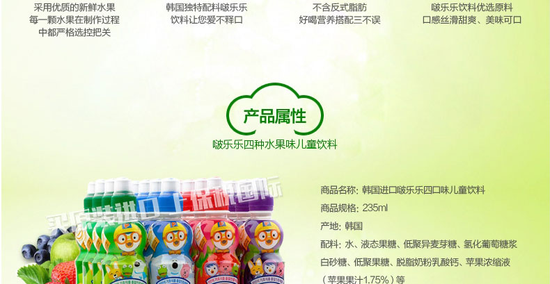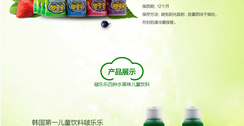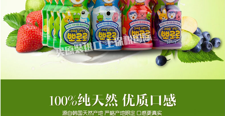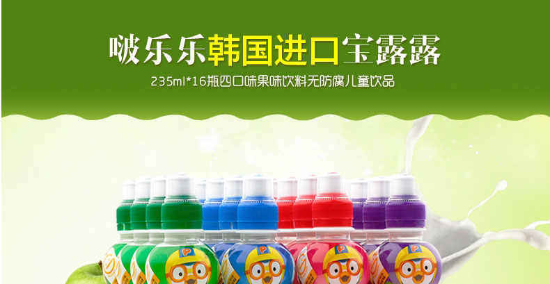 啵樂樂寶露露兒童飲料 牛奶/草莓/藍莓/蘋果 四種口味任選 乳酸菌果汁 絲滑甜爽 235ml/瓶—— 1、精選優質新鮮水果原料,嚴格把控生產過程。 2、獨特配方,口感絲滑甜美,美味可口。 3、獨特安全帽設計,防止灑落,可任意抓握。 |