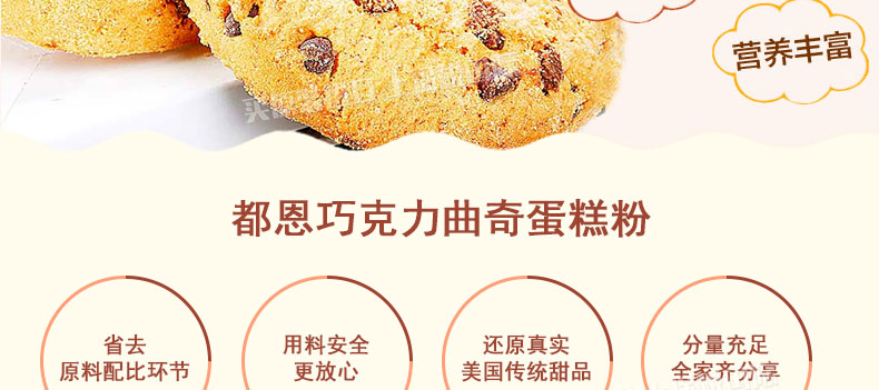 美國(guó)Duncan hines 都恩巧克力曲奇蛋糕粉 烘焙蛋糕的好幫手 原裝進(jìn)口 562g/盒—— 1、都恩蛋糕粉,蛋糕烘焙的黃金搭檔。 2、擁有它,你就是蛋糕烘焙大師。 3、它是蛋糕烘焙過(guò)程變得簡(jiǎn)單快捷。 |