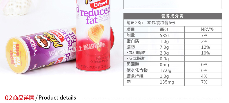 美國品客薯片 碳烤經典原味 紫色罐裝 非油炸健康辦公室零食 151g/罐—— 1.獨特弧形設計,不易碎裂。 2.開口處雙層保護,不用擔心潮濕細菌問題。 |