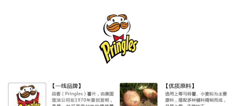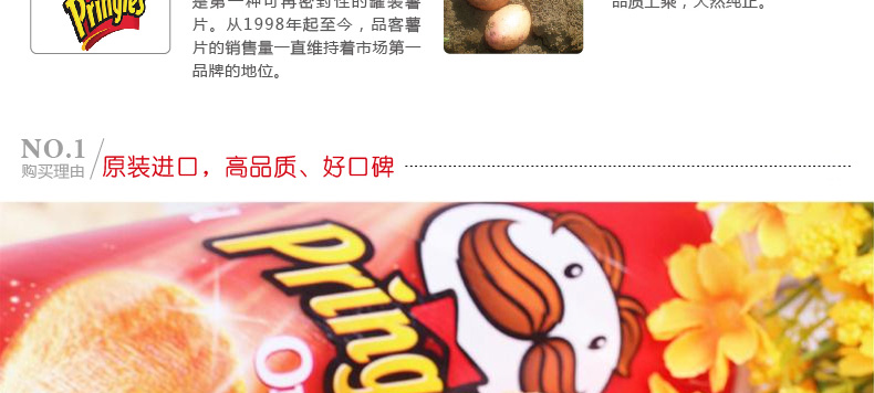 美國品客原味薯片 辦公零食下午茶首選 低卡低熱量 161g/罐—— 1、零反式脂肪,無負擔,更健康。 2、精選原料,配以獨特調味制成,安全衛生。 |