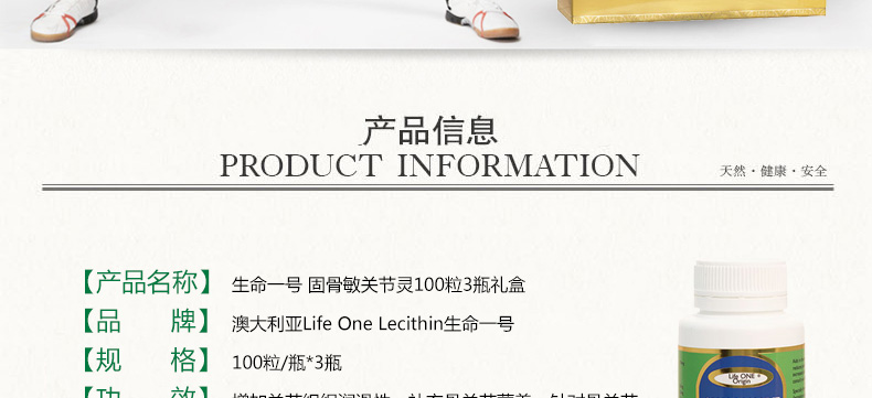 澳大利亞Life One Lecithin生命一號 固骨敏關節靈100粒3瓶禮盒 補充關節所需營養 100粒*3/瓶—— 1.增加關節組織潤滑性,補充骨關節營養。 2.針對骨關節疾病,骨質疏松,風濕類風濕疾病有顯著療效。 |