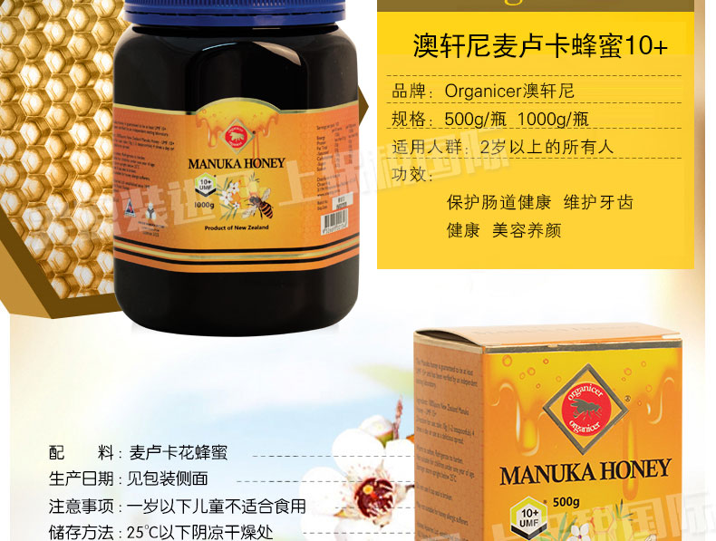 澳軒尼麥盧卡蜂蜜10+ 保護(hù)腸胃健康 新西蘭Organicer進(jìn)口 500g/1000g 兩種規(guī)格任選 |
