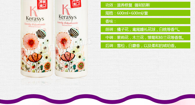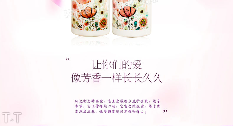 愛敬粉色 可愛浪漫花香調 香水洗發護發套裝 受損發質的滋養修復 600ml+600ml/套—— 1、前調:橘子花,鳶尾婚禮花球,白桃等香氣。 2、中調:茉莉花,木蘭花,雛菊和鈴蘭花等香氛。 3、后調:雪松,白麝香,以及柔和的琥珀香。 |