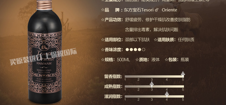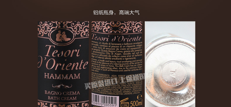 2瓶裝 東方寶石 土耳其風情鋁紙瓶身精油沐浴乳 天然修護排毒嫩膚沐浴液500ml/瓶*2—— 1、改善皮膚脂肪含量,保護肌膚抵御外界刺激。 2、促進皮膚新陳代謝排出毒素,讓肌膚更加細膩柔滑。 |