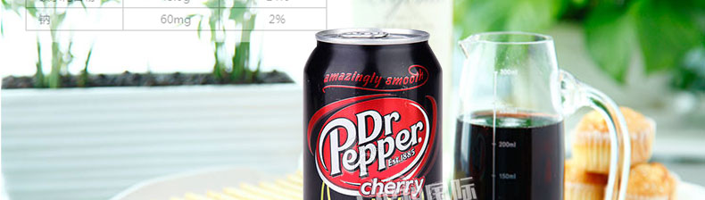 美國(guó)百事可樂(lè)黑罐裝櫻桃味胡椒博士系列 pepsi 休閑果味碳酸飲料汽水355ml/罐—— 1、飲用時(shí)加入一片新鮮檸檬和冰塊,口味更佳。 2、配料:碳酸水、高果糖、玉米糖漿、焦糖色、蘋果酸、檸檬酸等。 |