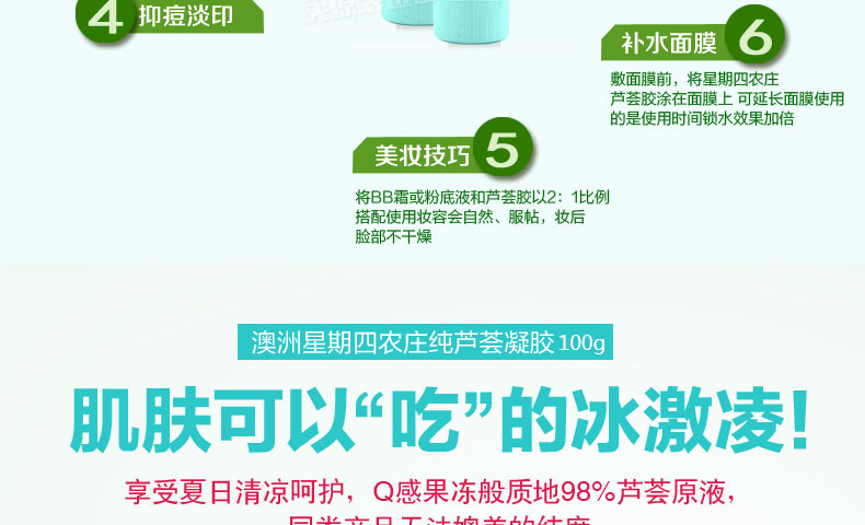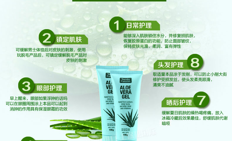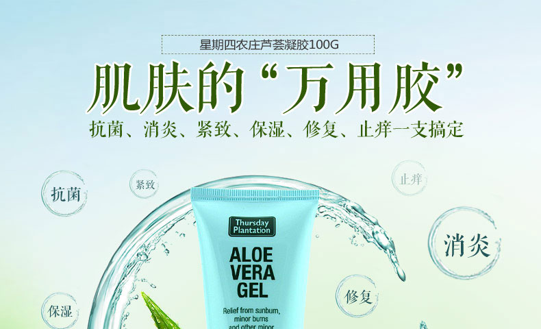 純天然濃縮蘆薈凝膠 星期四農(nóng)莊蘆薈膠 消炎止癢抗菌 曬后修復(fù) 100g/支—— 1、蘊(yùn)含97.4%蘆薈成分的高純度,濃縮蘆薈凝膠。 2、吸收迅速不油膩,無香味的透明膏體。 3、具有抗菌消炎止癢,祛痘祛疤修復(fù)等作用。 |