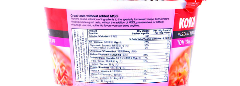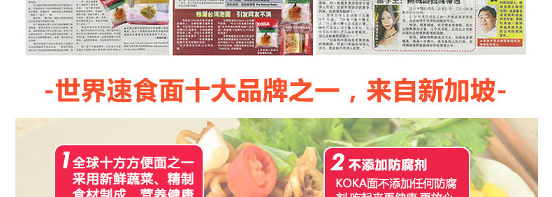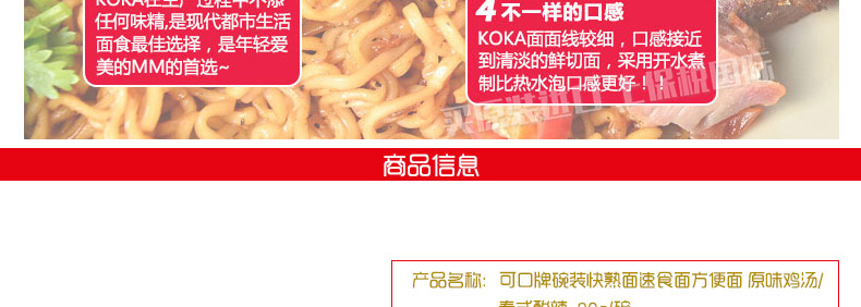 可口牌碗裝快熟面速食面方便面 原味雞湯/泰式酸辣 彈牙有嚼勁新加坡的美味泡面 90g/碗—— 1、全球十大方便面品牌之一生產(chǎn)的美味速食面。 2、低脂肪,無防腐劑,無味精,無人工色素的健康食品。 3、面條韌勁十足,彈牙可口有嚼勁。 |