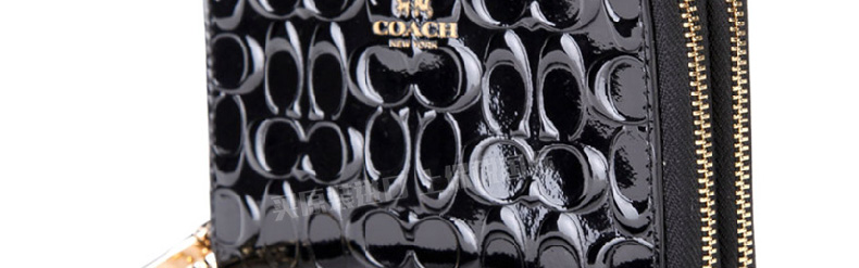 蔻馳黑色漆皮女士時尚手拿包F53310 兩層拉鏈 著名品牌Coach正品錢包 |