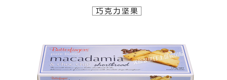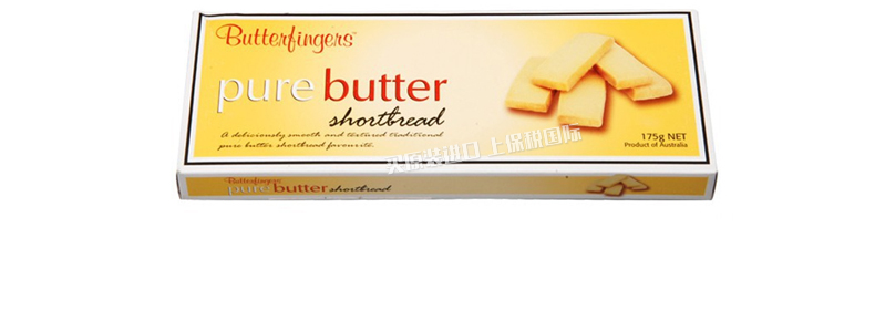 澳洲巴特芬格Butter Fingers手指形黃油酥餅 原味/堅果/檸檬香桃/巧克力/巧克力堅果 5種口味任選 175g/盒—— 1、精選優(yōu)質(zhì)食材,采用純正黃油。 2、色澤金黃,香酥可口,味道獨特。 3、5種口味,可任意選擇哦! |