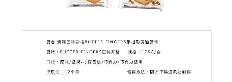 澳洲巴特芬格Butter Fingers手指形黃油酥餅 原味/堅果/檸檬香桃/巧克力/巧克力堅果 5種口味任選 175g/盒 |