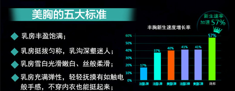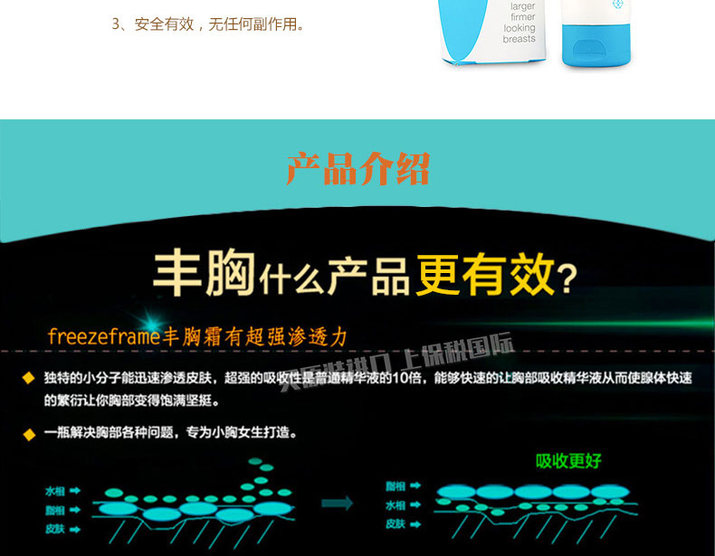 Freeze fr 1、小分子吸收更迅速,效果更顯著。 2、讓胸部更大,更挺,更緊實。 3、安全有效,無任何副作用。 |