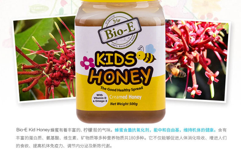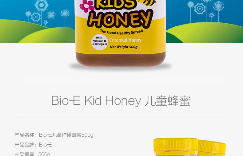 澳洲Bio-E兒童檸檬蜂蜜Kid Honey 含omega-3+維生素D 調節腸胃 提高免疫 500g/瓶 |