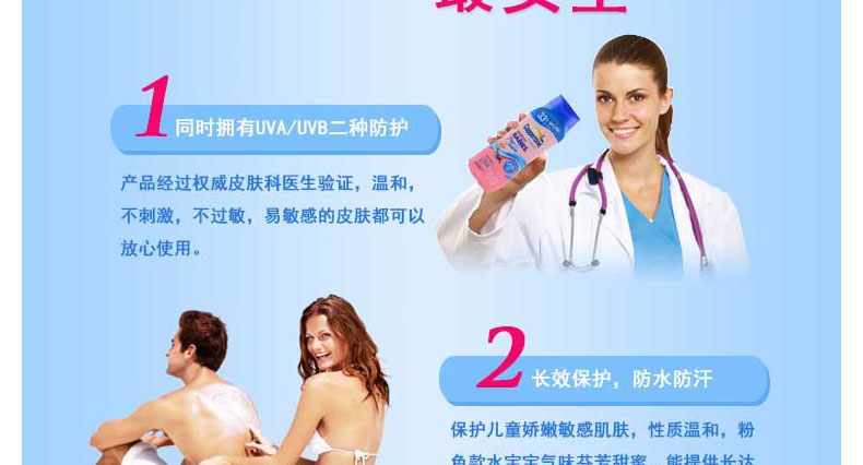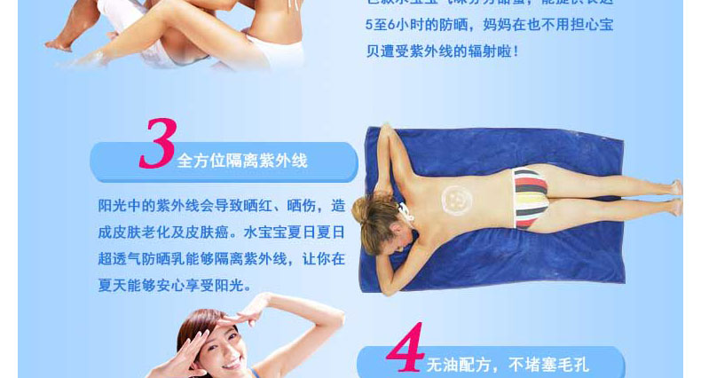 1. 防曬霜跟一般的護膚用品一樣,需要一定時間才能被肌膚吸收,所以出門前10~20分鐘應涂防曬霜,而去海灘前30分鐘就應涂好。 |