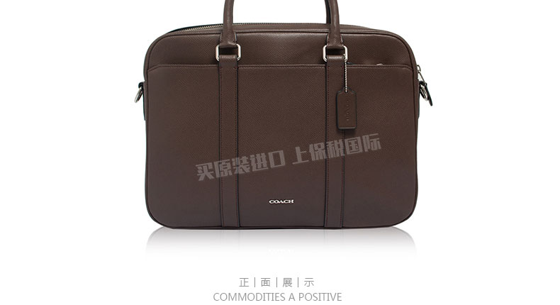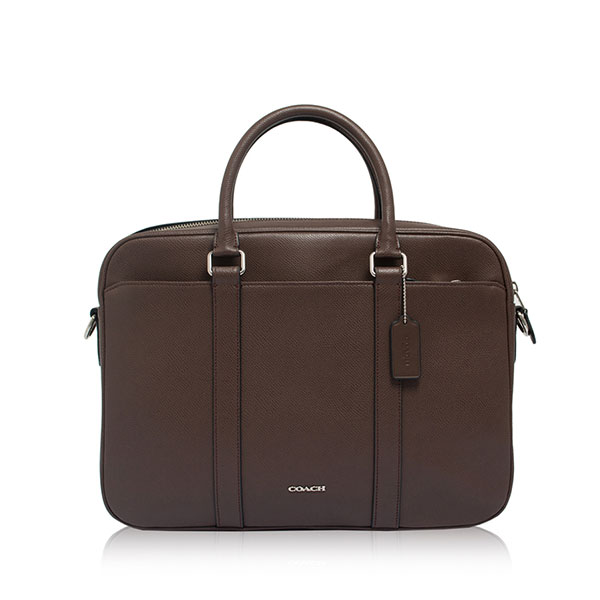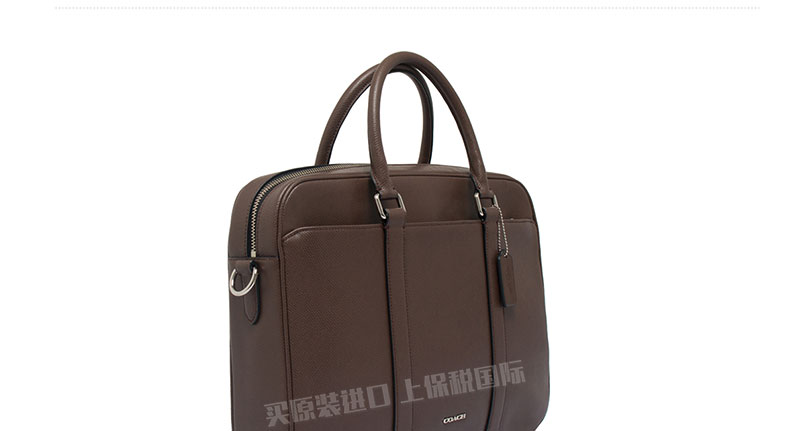 蔻馳深棕色荔枝紋硬牛皮男士單肩手提包F71681 Coach男士時尚休閑公文包 |