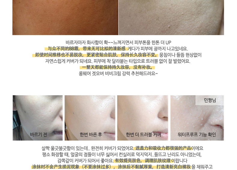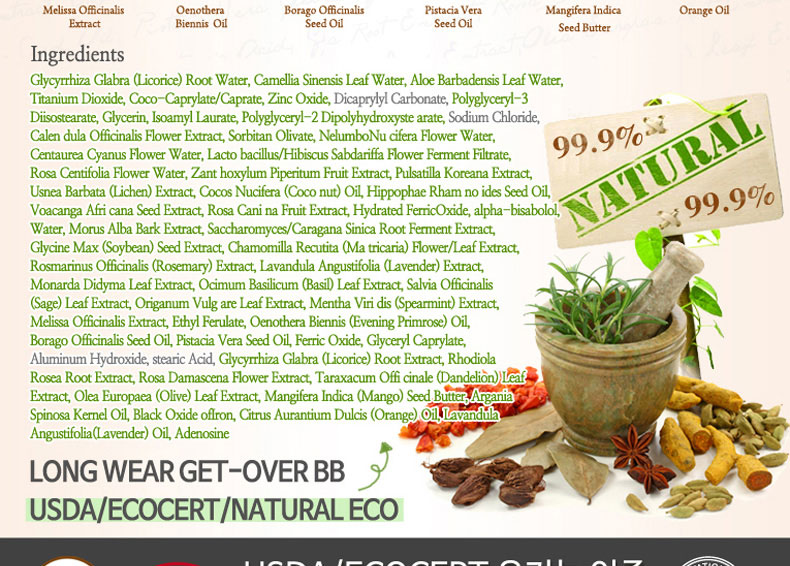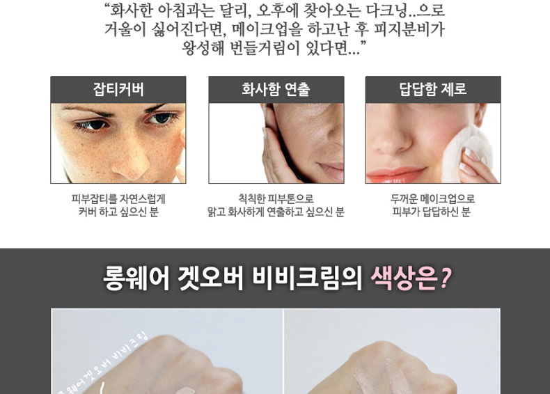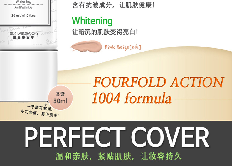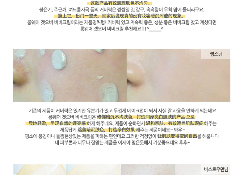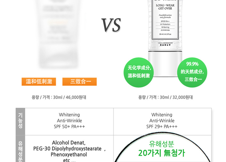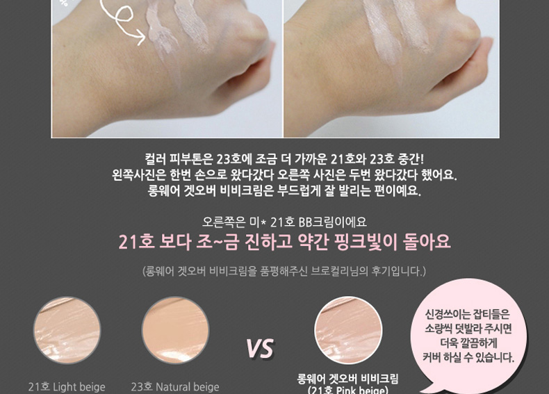 韓國Long Wear Get-Over BB霜SPF29++ 21#粉米色 持妝抗皺 薄荷清香的1004lab品牌BB霜 30ml/支—— 1、具有淡淡薄荷香味的BB霜。 2、奶油般的柔軟質地,延展性強。 3、含抗皺成分,持久妝效,提亮膚色。 |