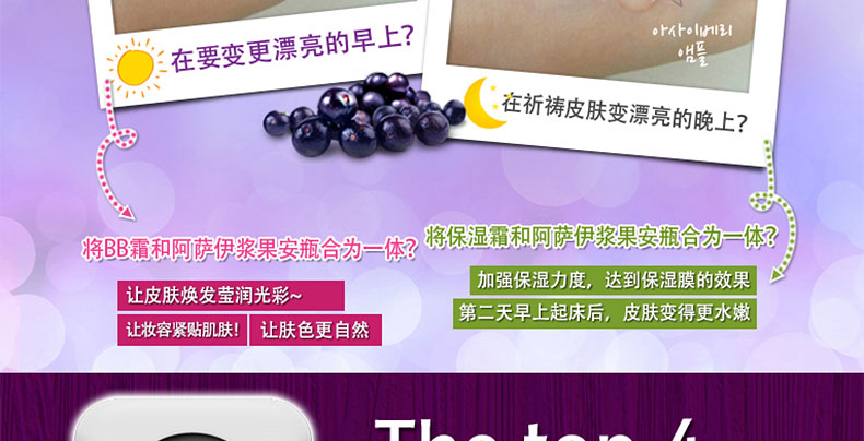 Acai berry 90抗衰老肌膚精華液 保濕抗氧化調節水油 韓國1004laboraiory品牌正品 50ml/瓶—— 1、富含90%的巴西莓抗氧化有效成分。 2、天然植物油可以調節肌膚水油平衡。 3、三大保濕成分令肌膚持久滋潤。 |