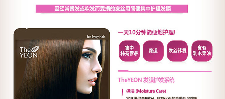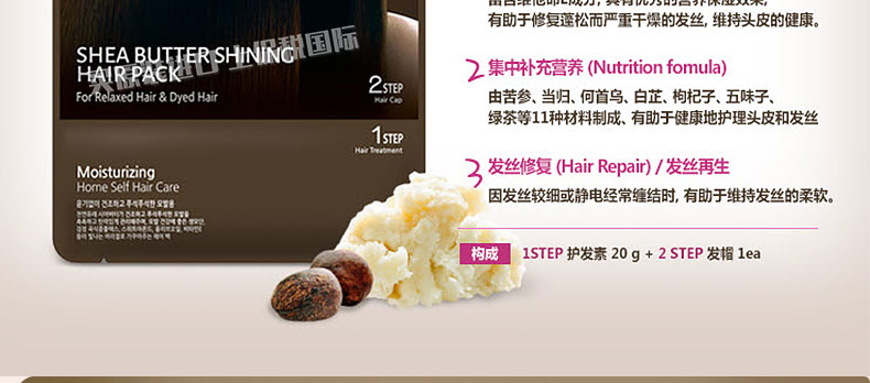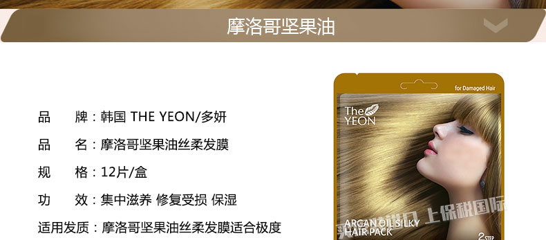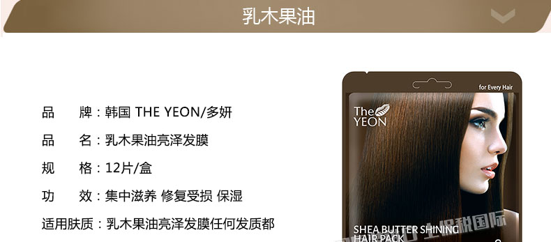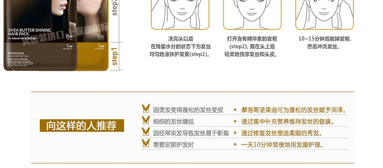 韓國多妍發膜 乳木果油亮澤發膜/摩洛哥堅果油絲柔發膜 滋養修復保濕 護發素+發帽 12片/盒—— 1、乳木果油亮澤發膜任何發質都能適用。 2、摩洛哥堅果油絲柔發膜適合極度受損發質。 3、每天10分鐘,輕松護理秀發! |