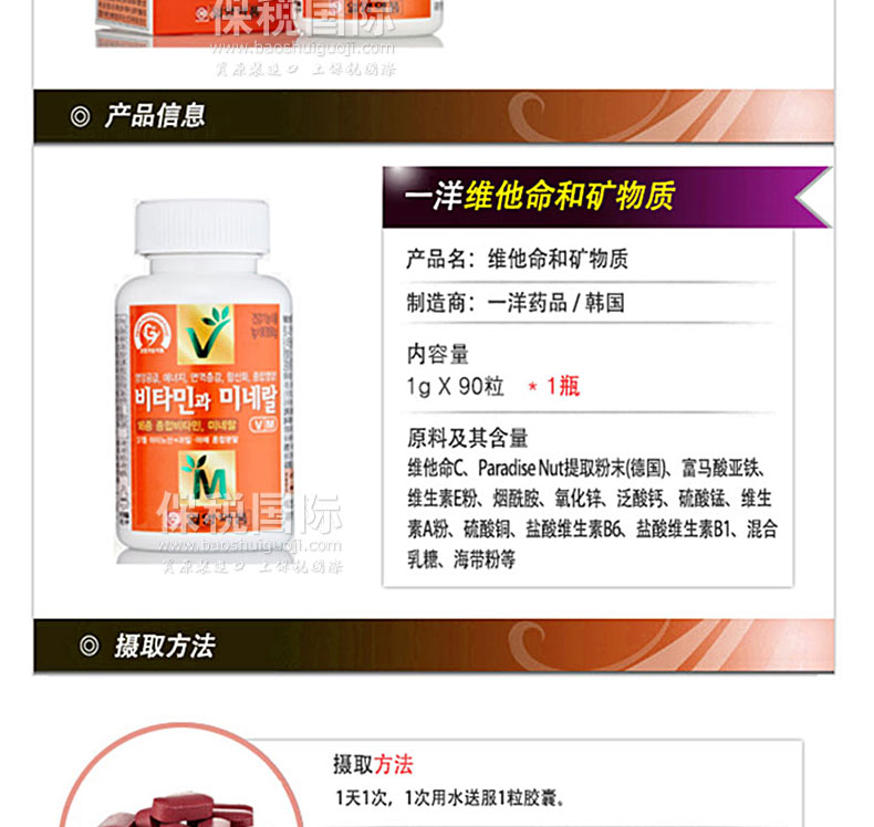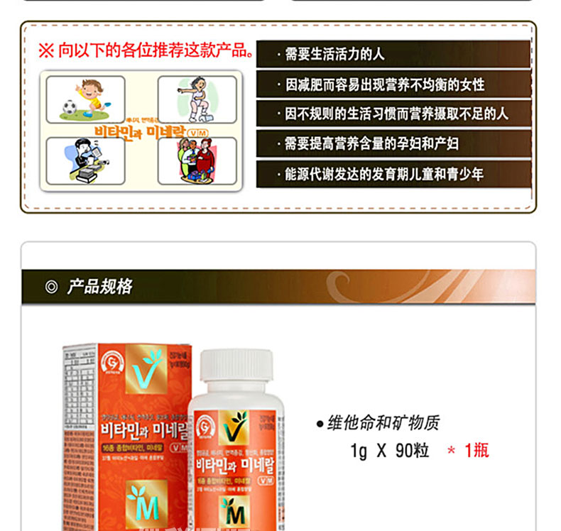 | 產 地 | 韓國 | 功 效 | ?? 補充身體所需維生素礦物質 | |