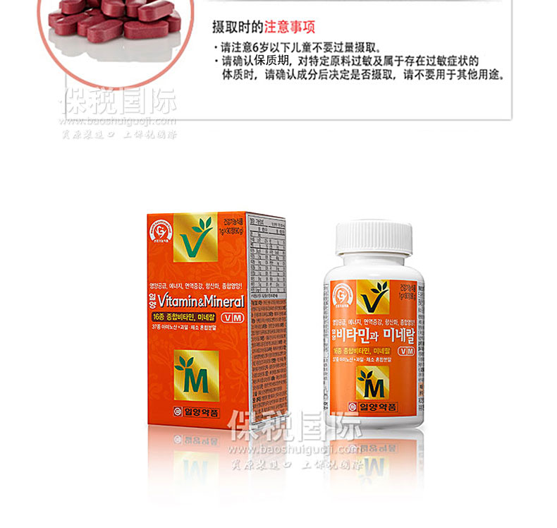 | 產品說明 | 韓國[一洋藥品] 維生素&礦物質片 2瓶裝—— ①含有11種復合維生素和5種礦物質的綜合營養補充品,防止營養的不均衡 ②是可以提供營養、增強活力和免疫力、抗氧化的功能性保健品 ③一天服用一粒,使用方便,補充所需營養元素 | |||