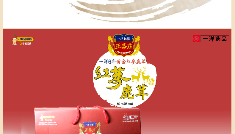 ![]() | 商品名稱 | 韓國[一洋藥品] 正品莊 六年紅參鹿茸? 30包 1個月量 1800g | ||
