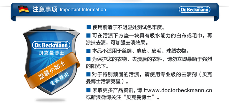 德國貝克曼博士血漬奶漬去漬克星去精液漬乳液漬膿液漬尿漬50ml/瓶