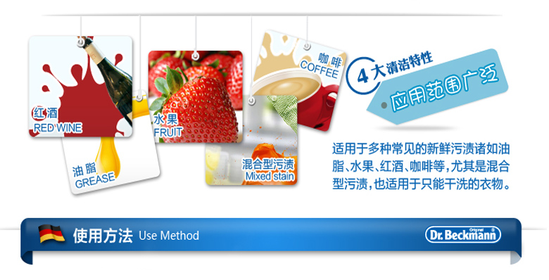 德國貝克曼博士去紅酒果漬克星快速去除寶寶衣服新舊污漬去茶漬免洗干洗劑50g/瓶