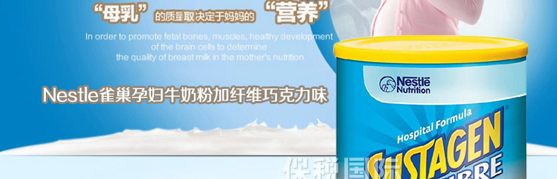 ![]() | 商品名稱 | Nestle雀巢SUSTAGEN plus孕婦牛奶粉加纖維巧克力味900g/罐 | ||
