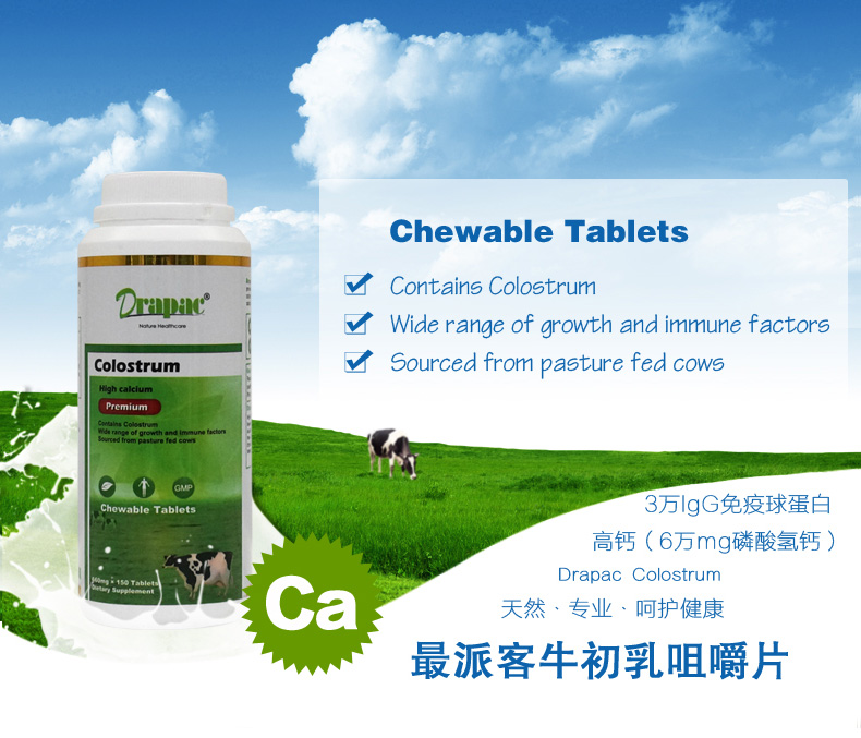 【新西蘭直郵】DRAPAC/新西蘭最派客牛初乳片(30000 IgG+高鈣)150片提高身體免疫力 增強抵抗力