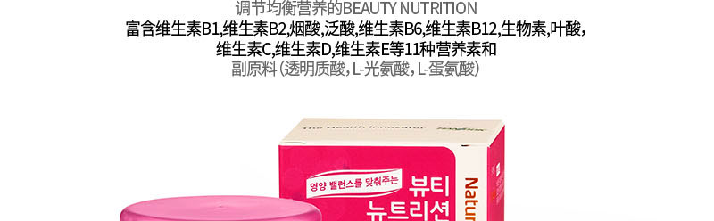 韓國HANDOK Beauty Nutrition維生素片 均衡營養(yǎng) 60粒/盒—— 1、富含11種人體所需的維生素成分。 2、全面補(bǔ)充調(diào)節(jié),均衡營養(yǎng)。 3、化妝品盒裝,每天一次,簡單方便。 |