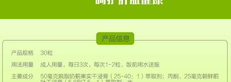 2盒裝 德國(guó)雙心Doppelherz洋薊奶薊草復(fù)合膠囊 增強(qiáng)肝臟功能 30粒/盒—— 1、富含奶薊草和朝鮮薊的有效萃取成分! 2、增強(qiáng)肝臟功能,增強(qiáng)膽汁活性。 3、慢性肝炎,飲酒肝功能損傷,高膽固醇人群尤其適用。 |