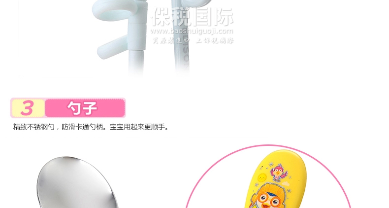 韓國寶露露新概念兒童餐具 筷子+勺子+套盒—— 1、小朋友喜歡的卡通造型,符合人體工學設計; 2、采用圓滑設計,寶寶使用更安全; 3、鍛煉寶寶集中力,適應力和智能開發的新概念兒童餐具。 |