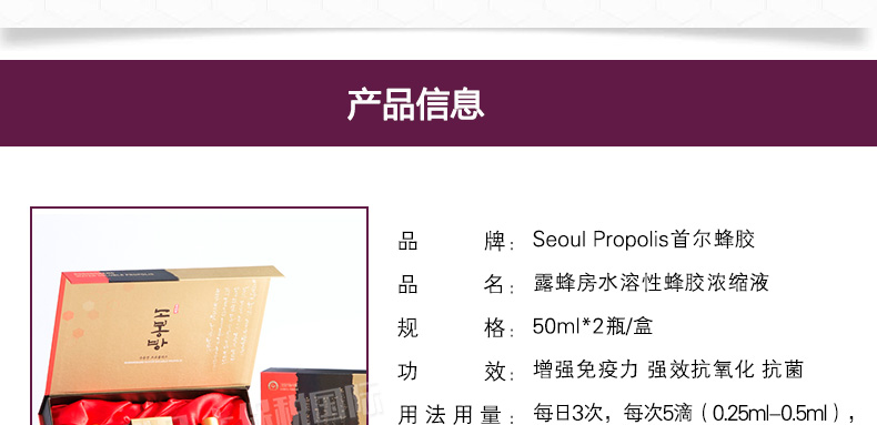韓國Seoul Propolis露蜂房水溶性蜂膠濃縮液 抗菌抗氧化 50ml*2瓶/盒 |