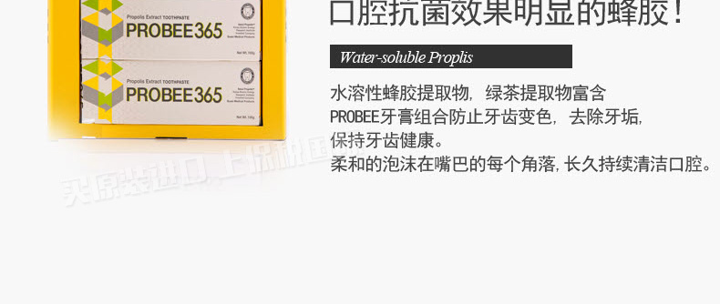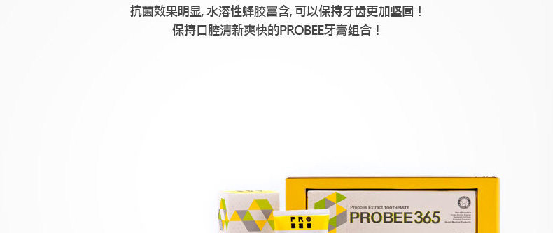 韓國Seoul Propolis PROBEE 365蜂膠牙膏組合 保護(hù)牙齒 100g*3/盒—— 1、富含水溶性蜂膠,綠茶提取物等天然成分! 2、有效保護(hù)牙齒,維持口腔健康。 3、全家人皆能適用哦! |