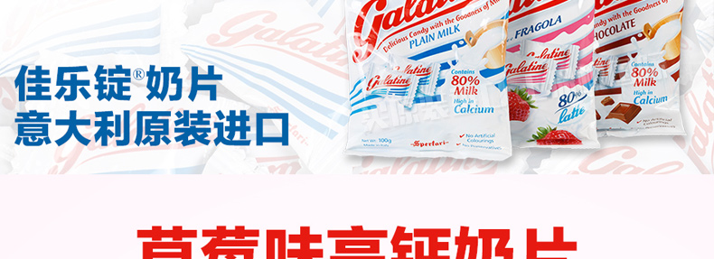 3袋裝 意大利佳樂定Galatine三種口味奶片牛奶糖 原味牛奶 草莓味 巧克力味 各一袋 115g/袋 高鈣營養(yǎng)不上火糖果零食 |