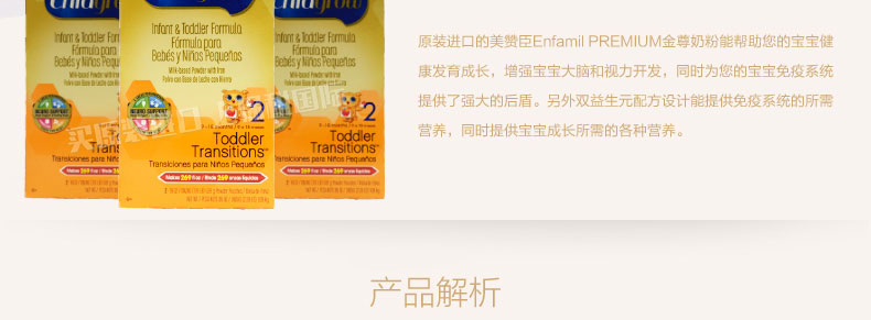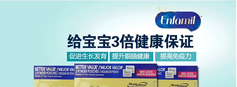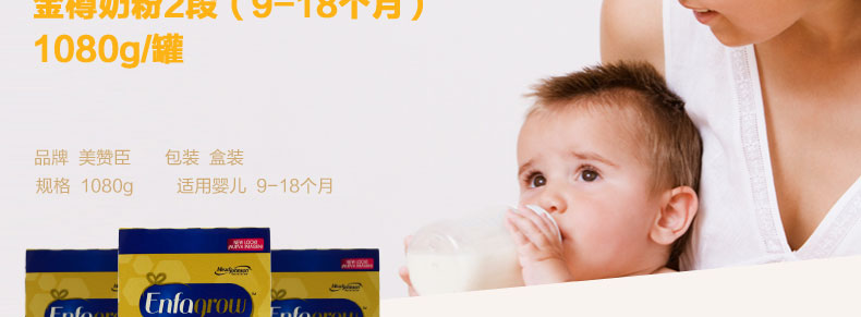 兩罐裝 美國美贊臣Enfamil 金樽二段 9-18個月寶寶奶粉 促進視力智力發育 提高免疫力 1080g/罐*2—— 1.專為9-18個月嬰幼兒研制,有助寶寶生長發育。 2.含有大量益生菌,保護腸胃系統,讓寶寶不上火不便秘。 3.Enfagrow系列不僅能給寶寶免疫系統的支持,還能幫助寶寶形成天然的保護屏抵抗疾病。 |